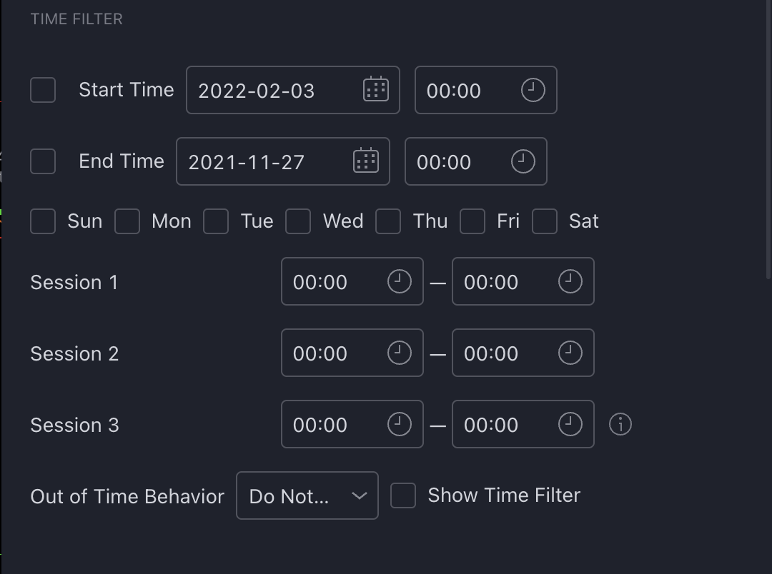 You can filter your signals by date, day, and session giving you complete control of when your strategy is allowed to execute trades.
